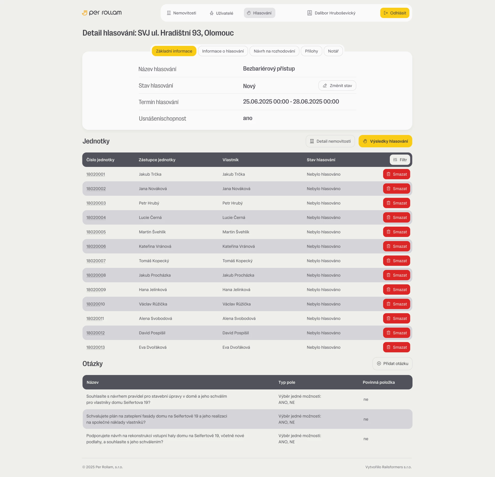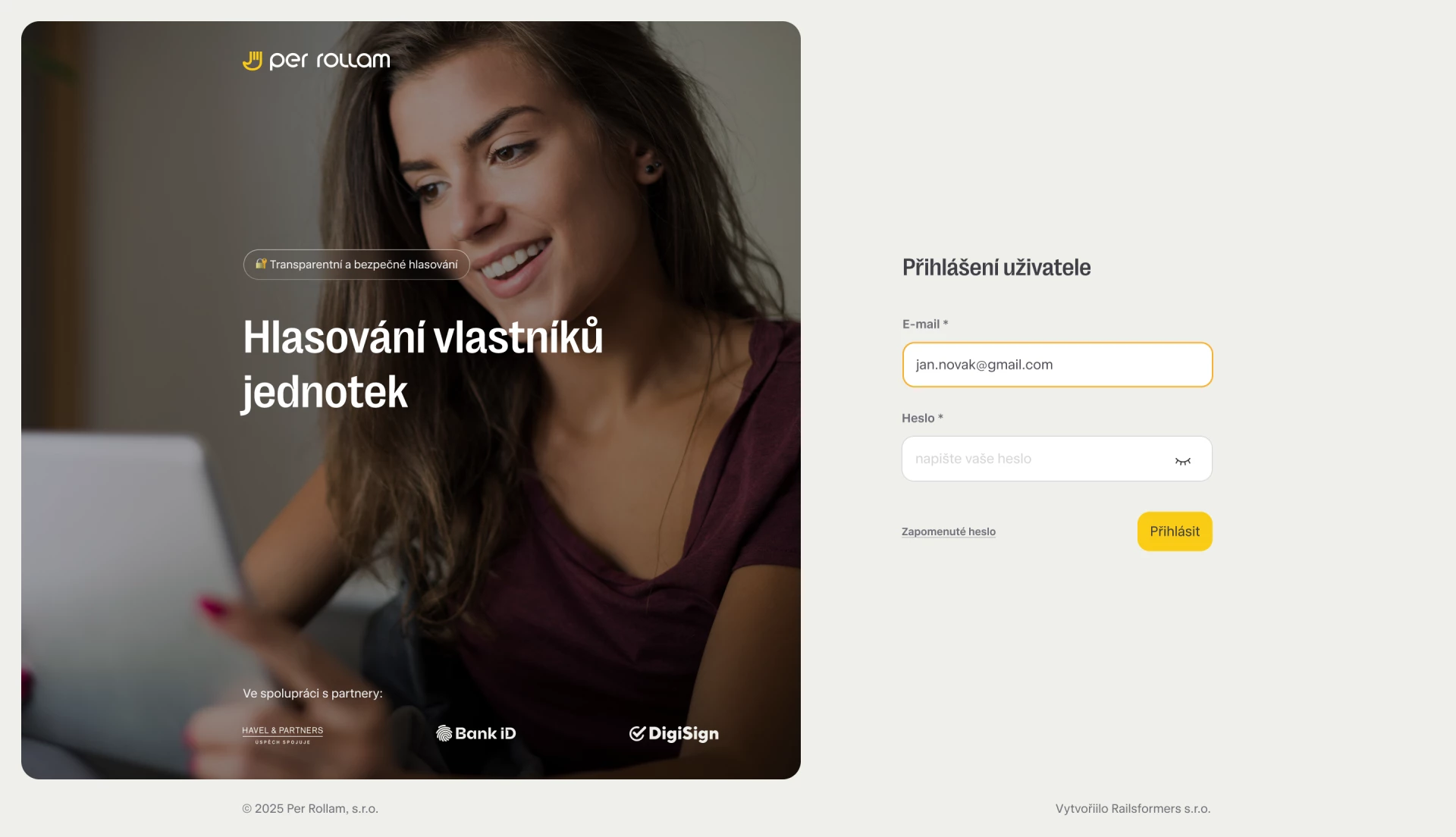 Digitization of processes has been a key topic in recent years, even in areas that traditionally rely more on paper documentation and face-to-face meetings. An example is voting within a unit owners' association (UOA), where it is often necessary to ensure transparency, legal recognition and efficient data collection. New to the market, the system per-rollam.comwhich we at Railsformers have recently launched, is a modern solution that not only enables faster organisation of voting, but also significantly increased legal certainty and convenience for all involved.